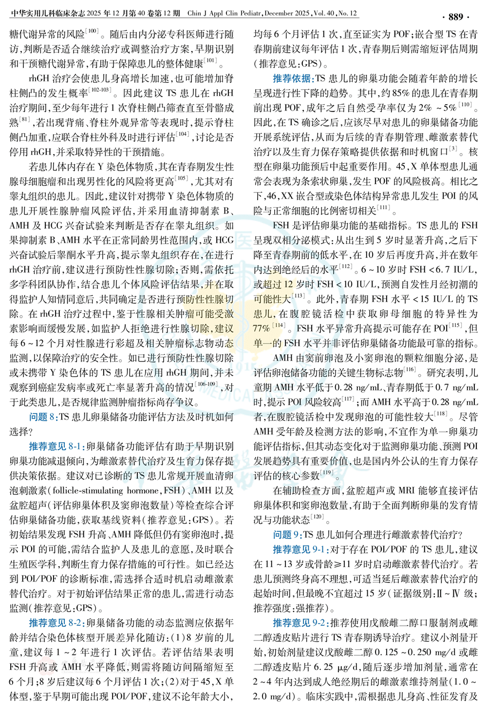 2、临床问题及推荐意见:rhGH治疗、卵巢储备功能、雌激素替代治疗