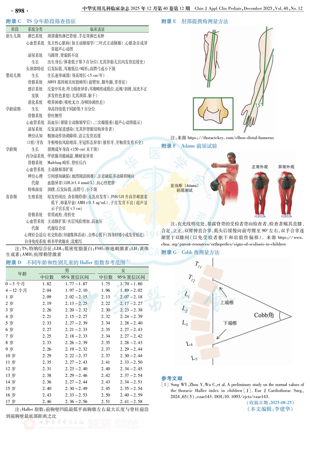 附录C TS分年龄段筛查指征 附录D Haller指数参考 附录E 肘部提携角测量方法