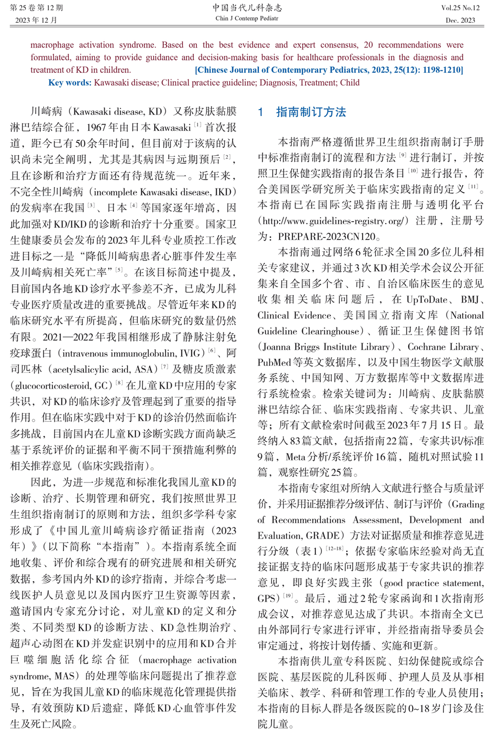 中国儿童川崎病诊疗循证指南(2023年)