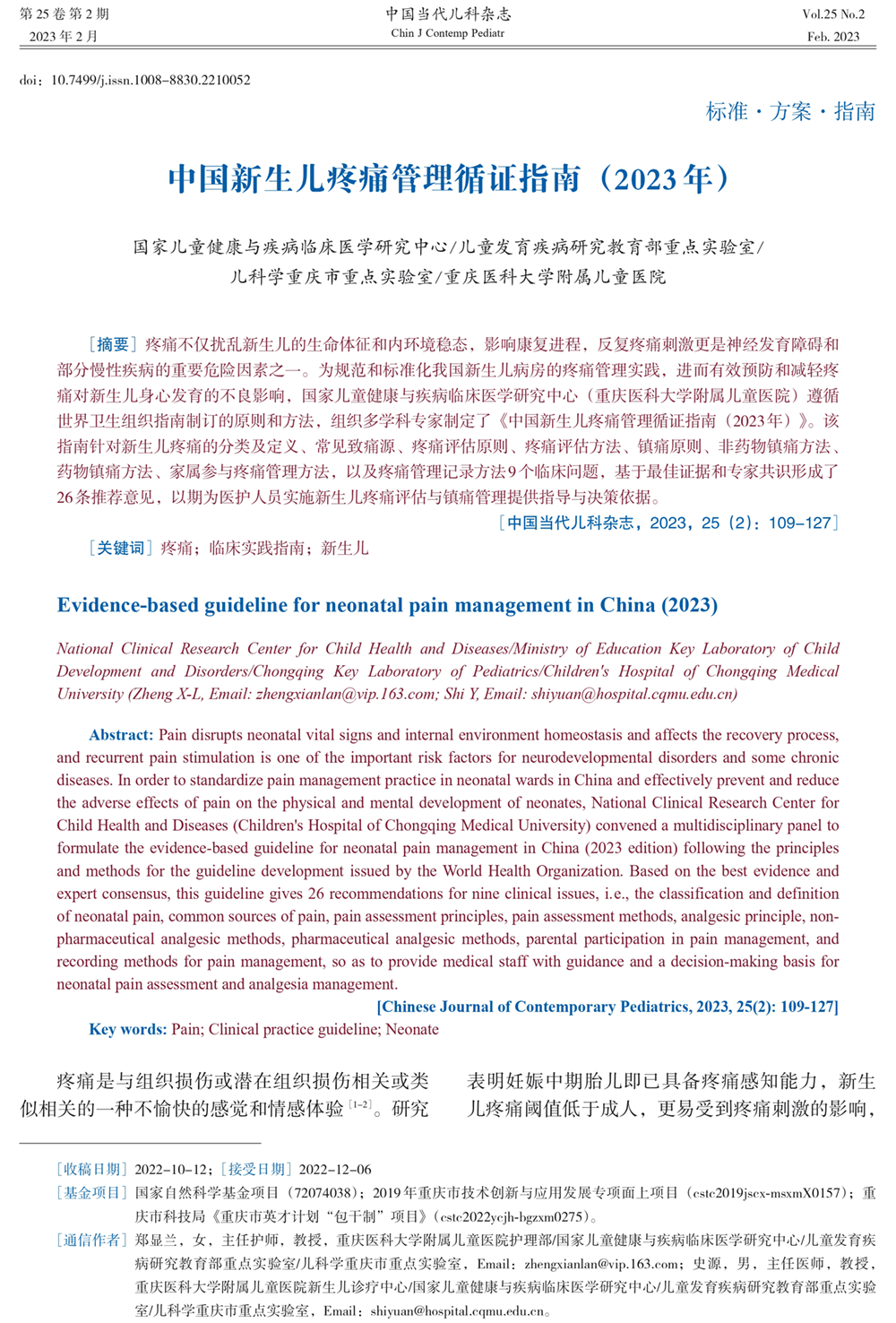 中国新生儿疼痛管理循证指南(2023年)