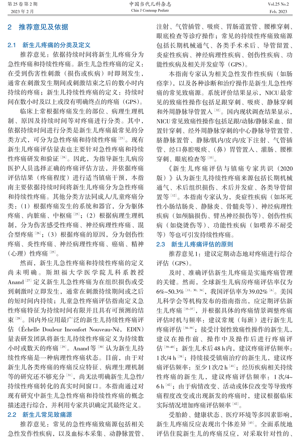 2、推荐意见及依据:分类及定义、致痛源、评估的原则、镇痛原则、安全性