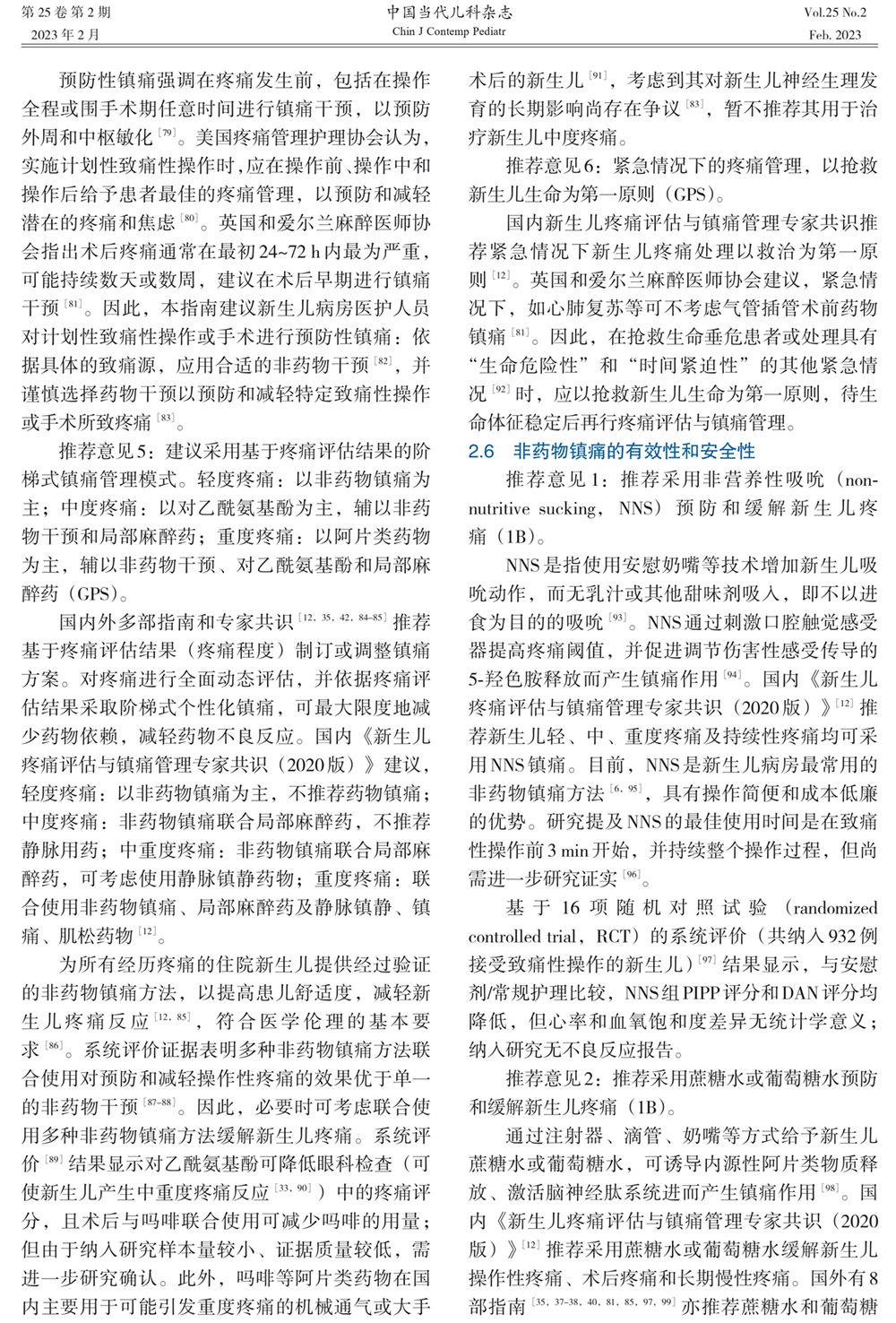 2、推荐意见及依据:非药物镇痛的有效性和安全性、家属参与