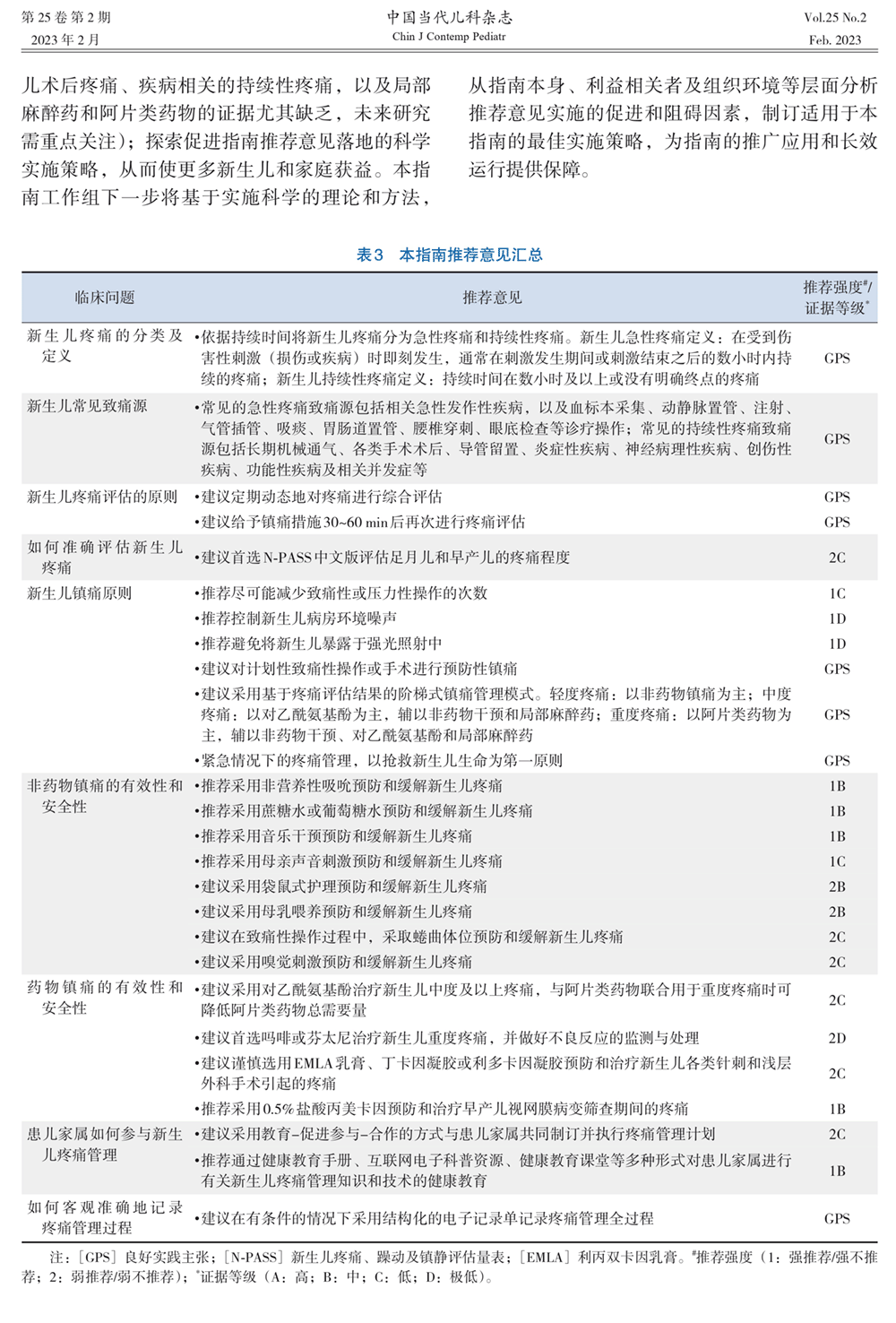 表3 本指南推荐意见汇总