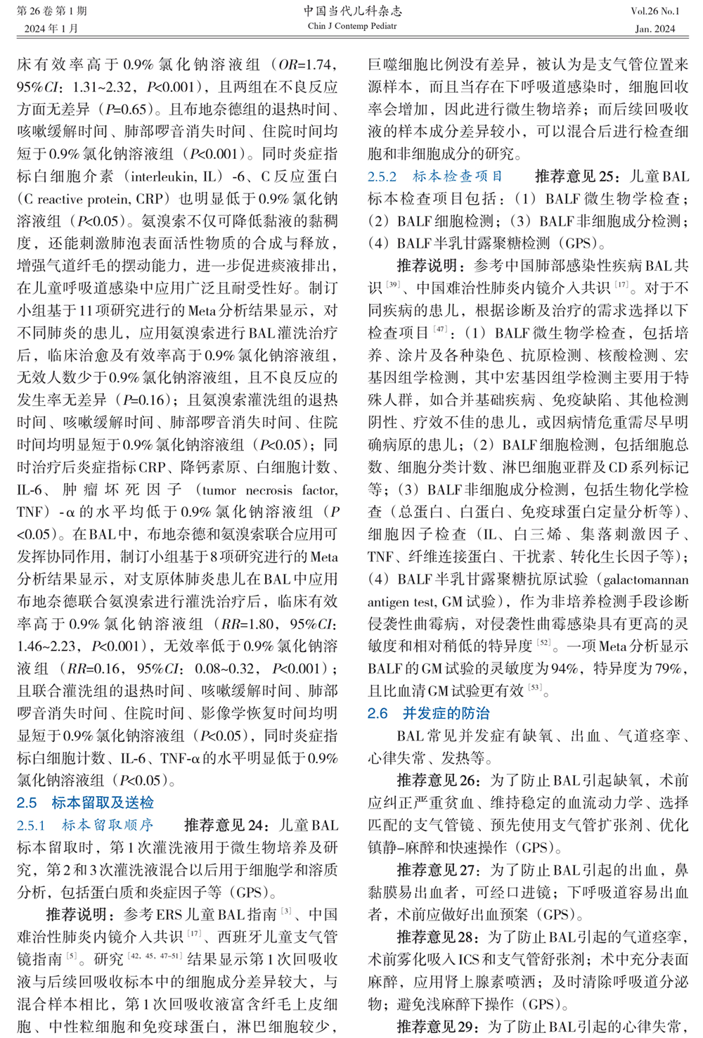 2、推荐意见及依据:灌洗部位压力、标本留取及送检、并发症防治