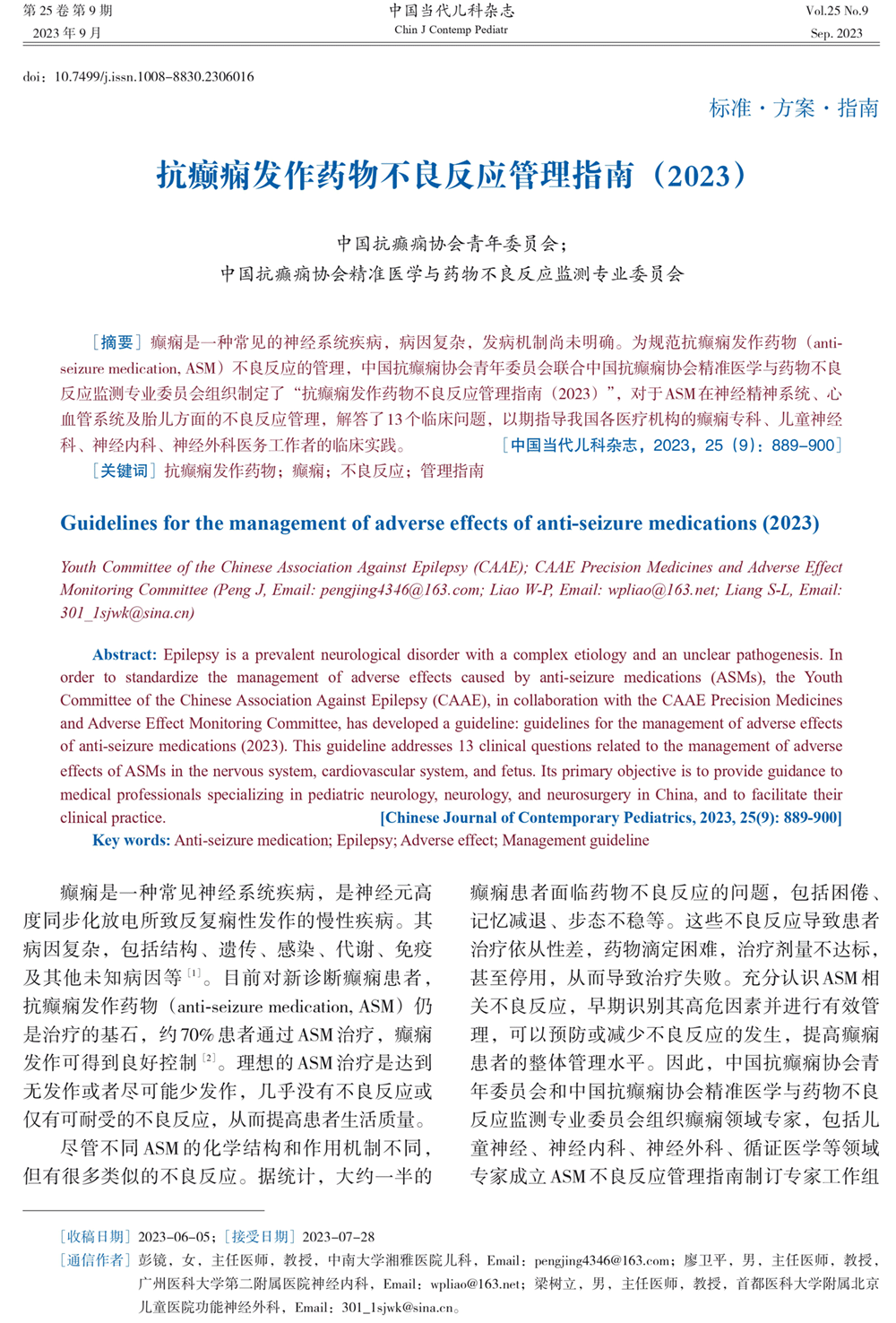 抗癫痫发作药物不良反应管理指南(2023年)
