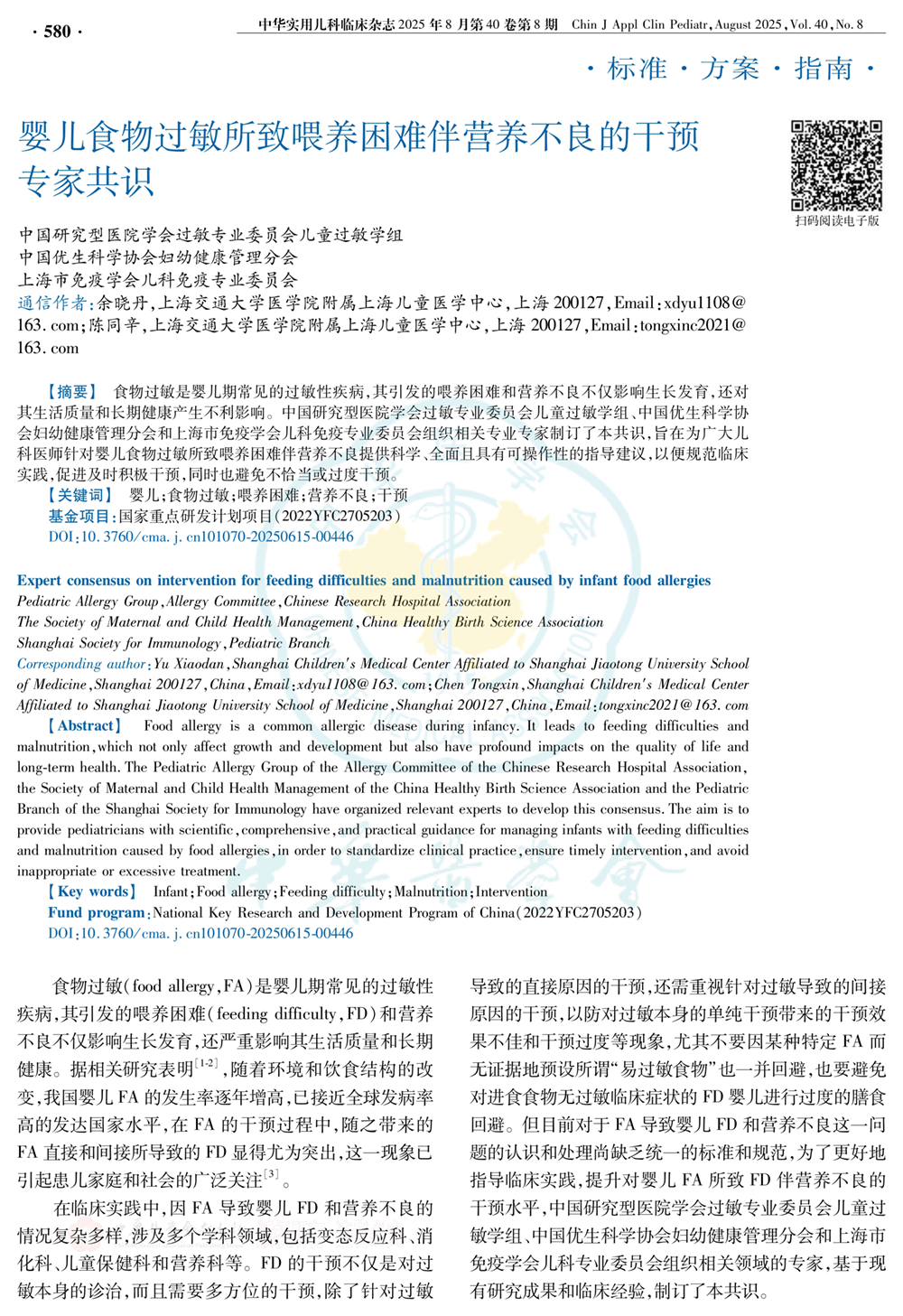 婴儿食物过敏所致喂养困难伴营养不良的干预专家共识(2025年)