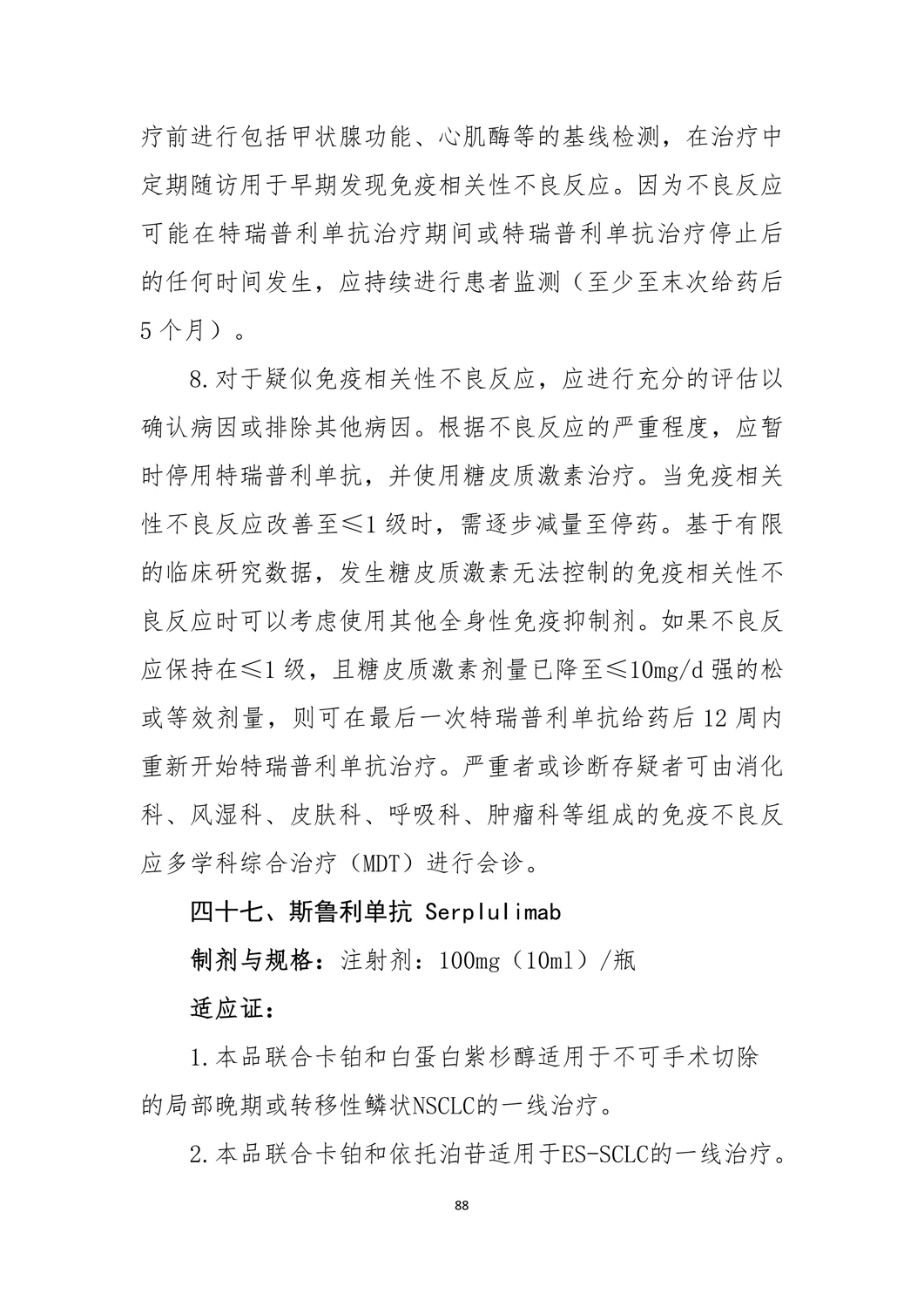 舒格利单抗/特瑞普利单抗 规格、适应证、用药要点