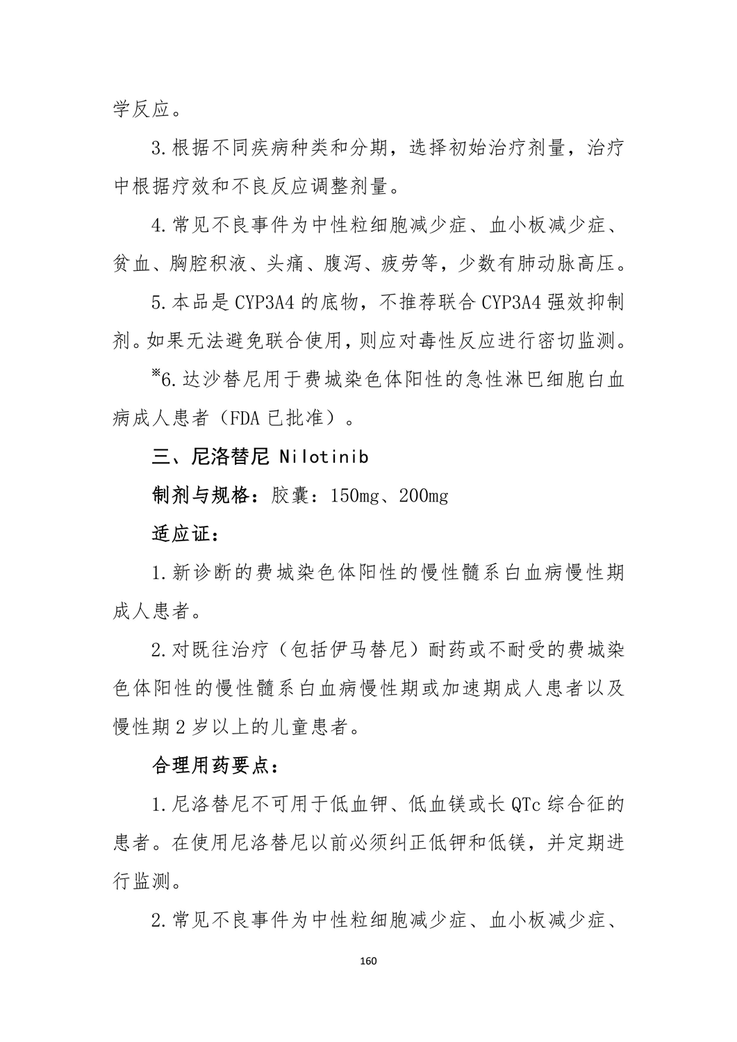 伊马替尼/达沙替尼/尼洛替尼 规格、适应证、用药要点