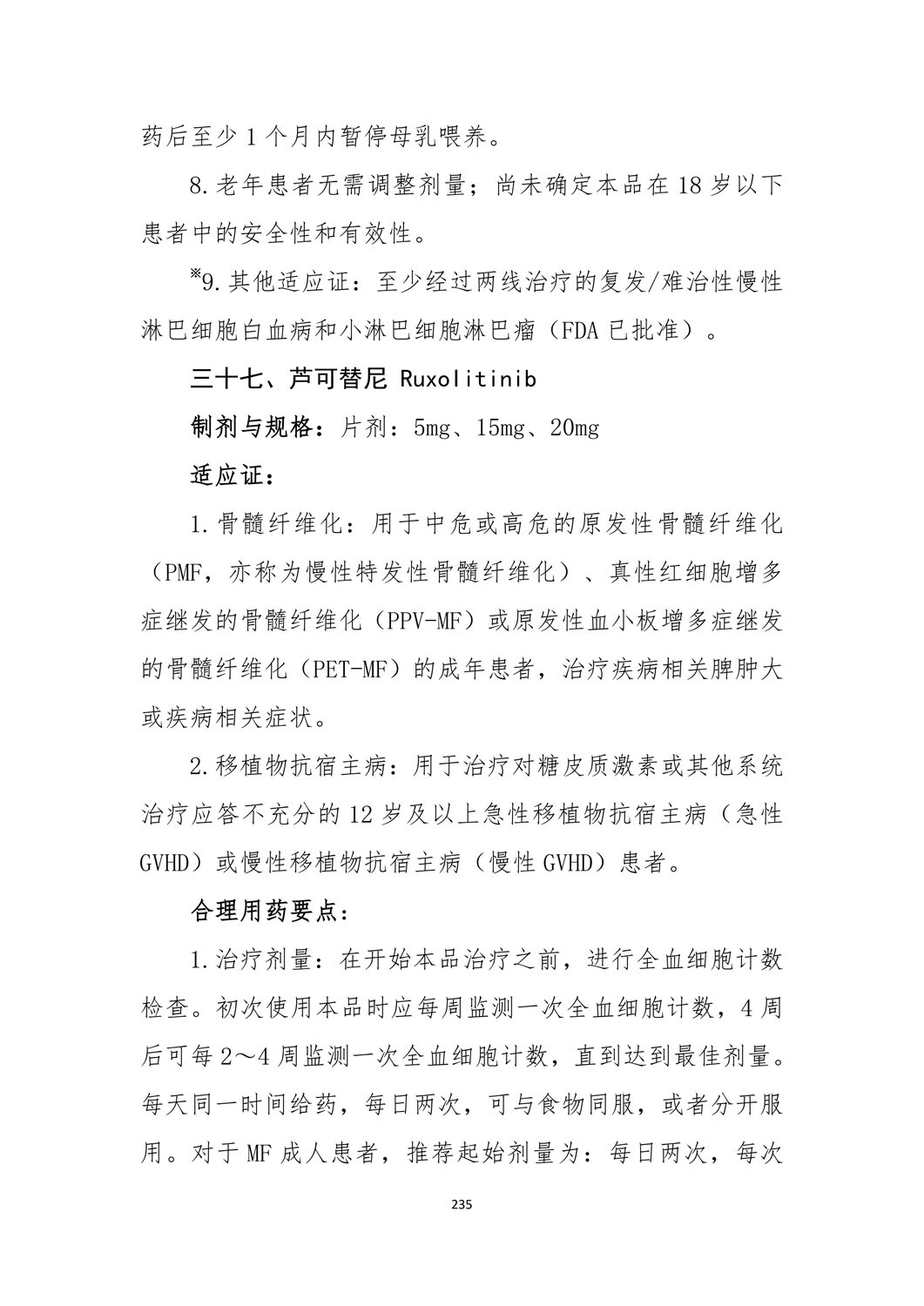 芦可替尼/戈利昔替尼 规格、适应证、用药要点