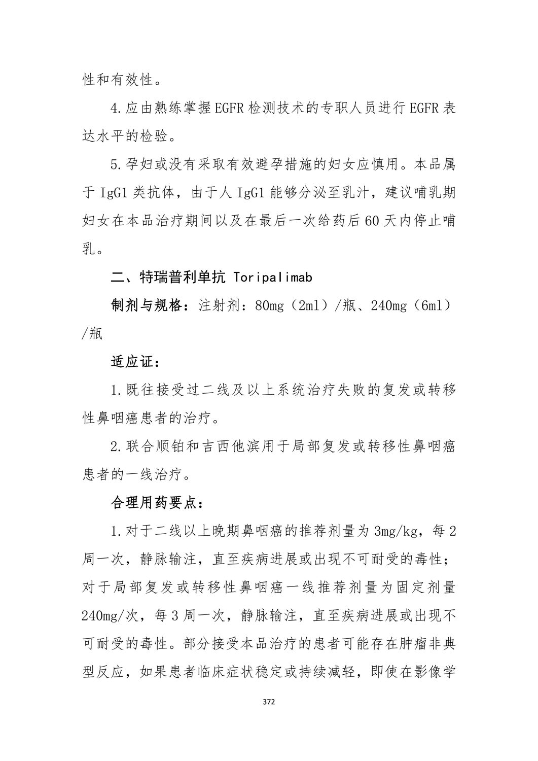 尼妥珠单抗/特瑞普利单抗 规格、适应证、用药要点