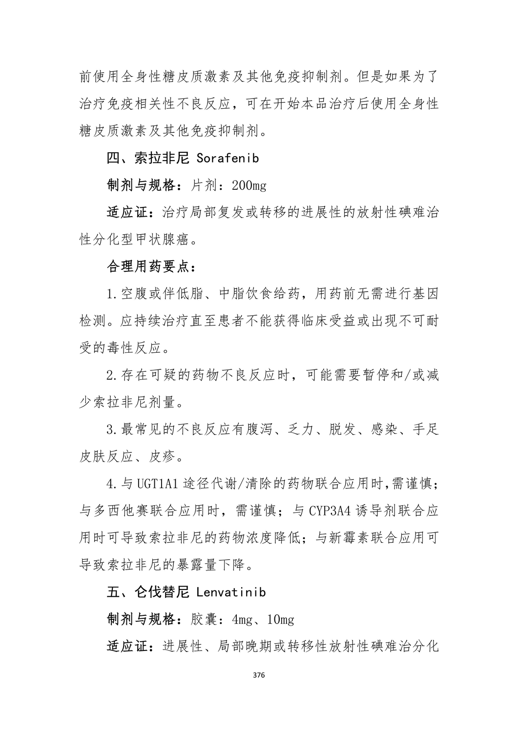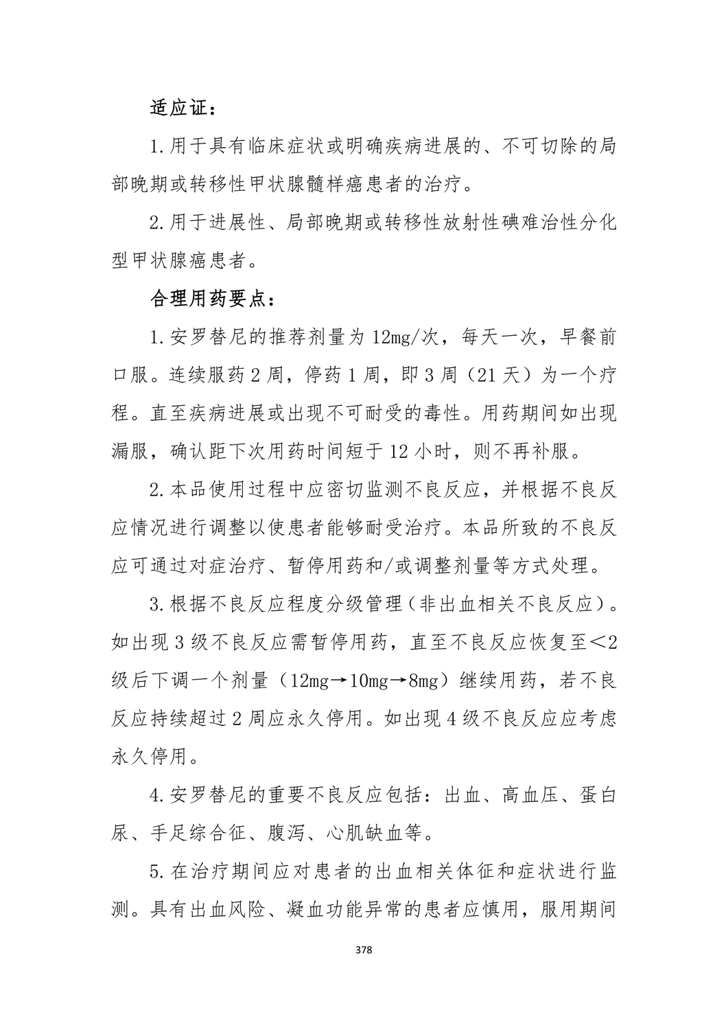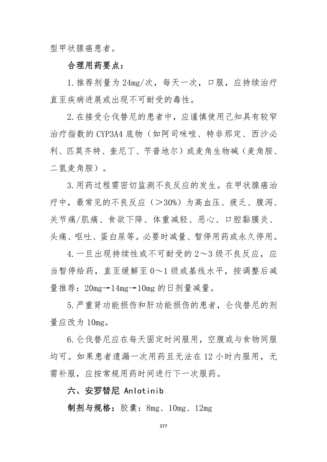 仑伐替尼/安罗替尼 规格、适应证、用药要点