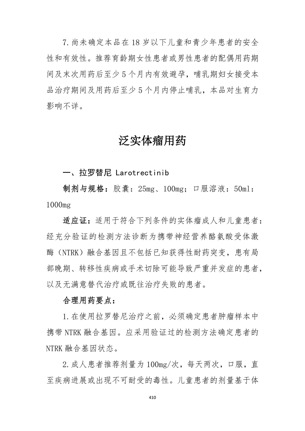 拉罗替尼 规格、适应证、用药要点