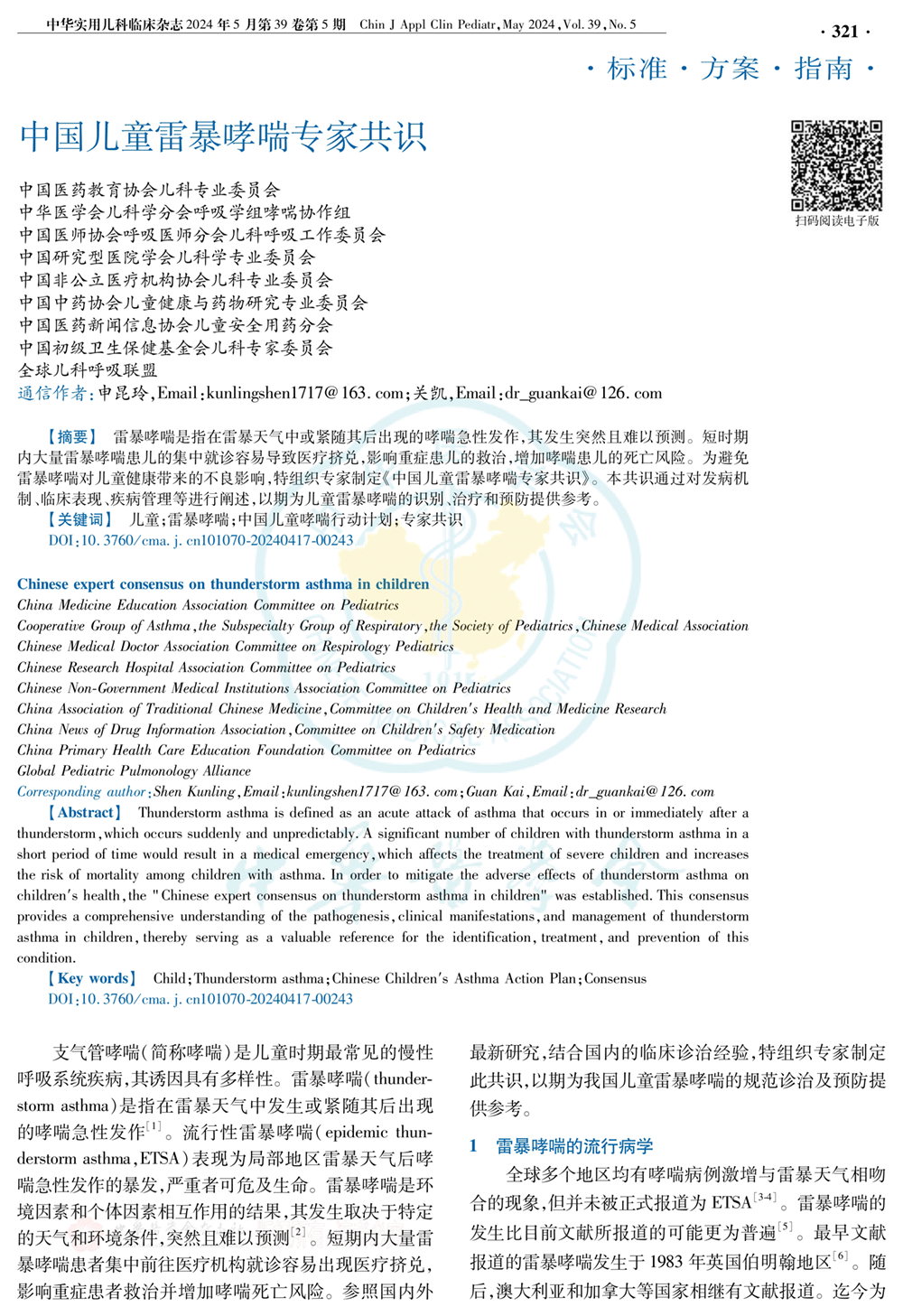 中国儿童雷暴哮喘专家共识(2024年)