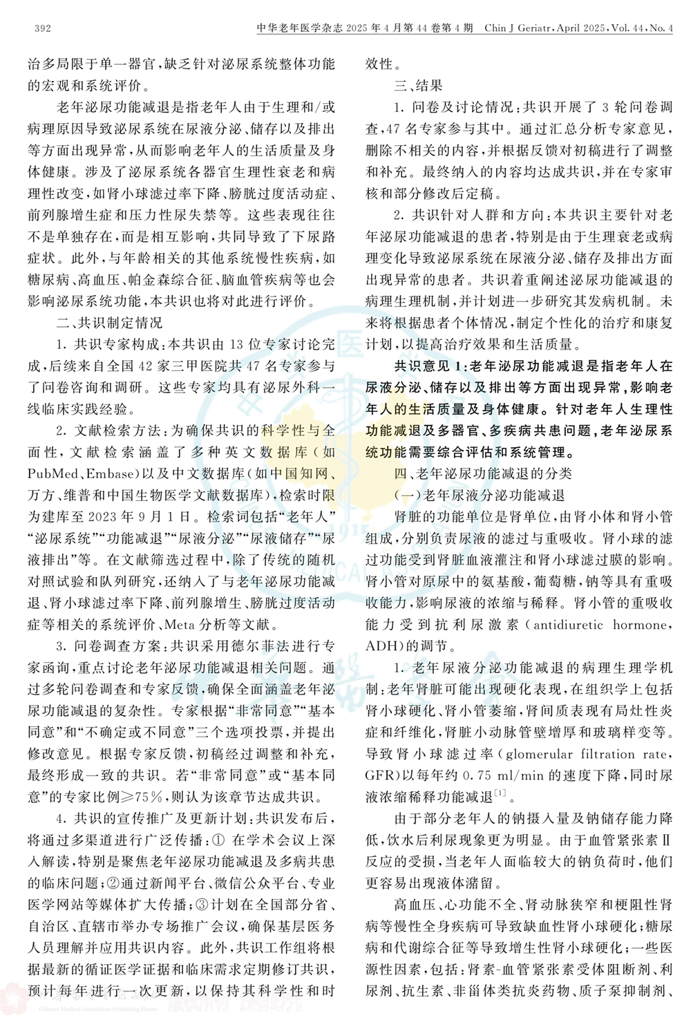 老年泌尿系统功能减退综合管理专家共识(2025年)