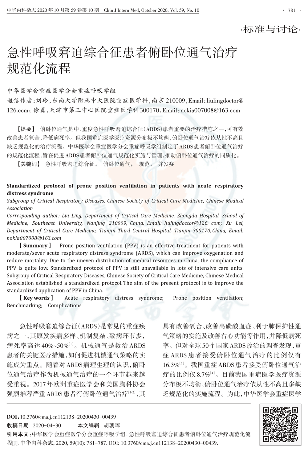 急性呼吸窘迫综合征患者俯卧位通气治疗规范化流程(2020年)