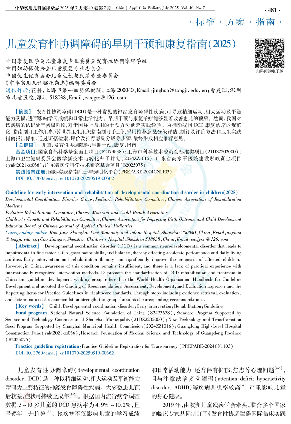 儿童发育性协调障碍的早期干预和康复指南(2025年)