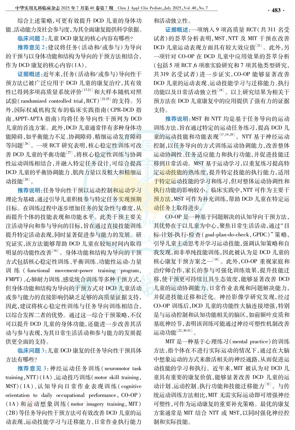 儿童发育性协调障碍干预康复