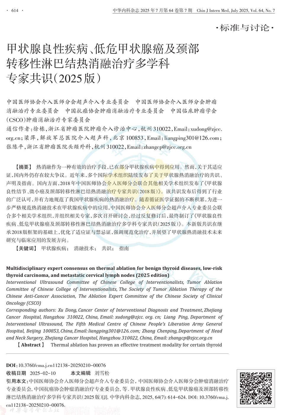 甲状腺良性疾病、低危甲状腺癌及颈部转移性淋巴结热消融治疗多学科专家共识(2025版)