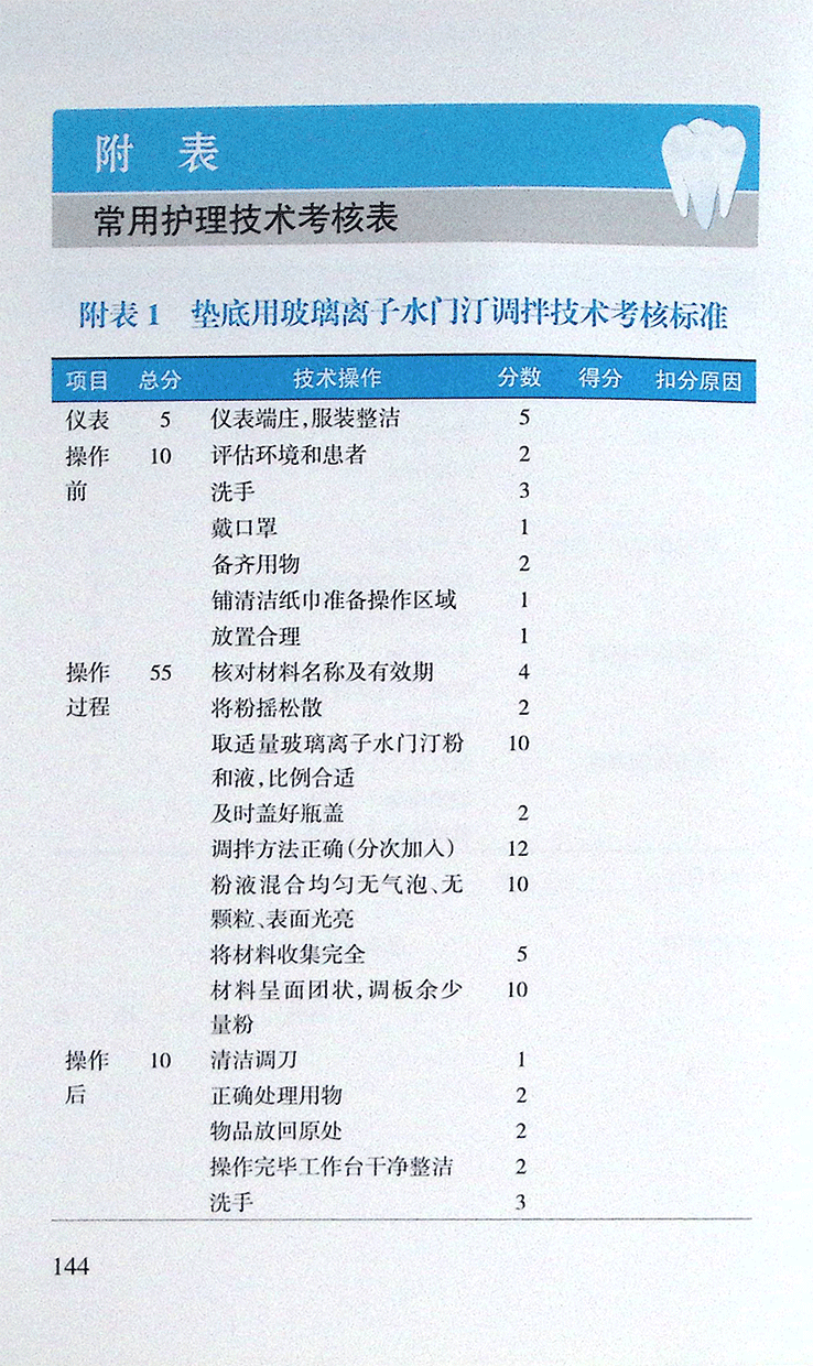 附表1 垫底用玻璃离子水门汀调拌技术考核标准