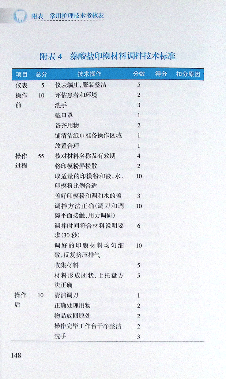 附表4 藻酸盐印模材料调拌技术标准