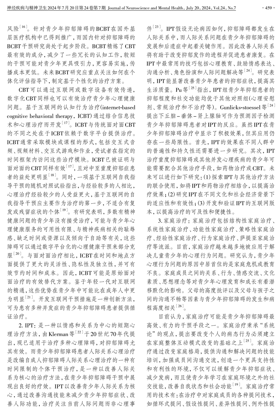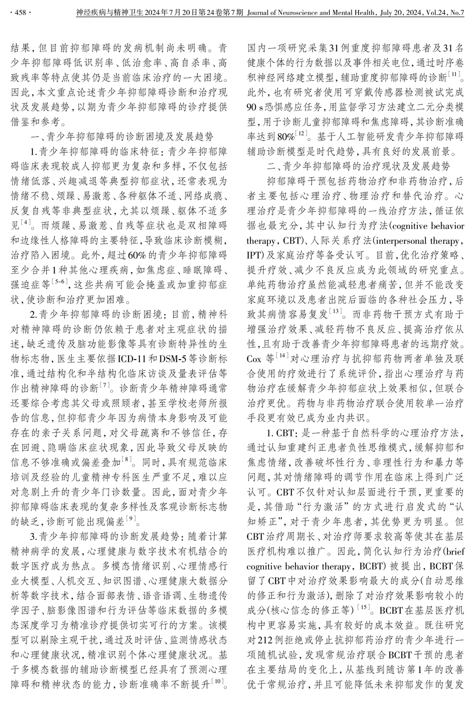青少年抑郁障碍诊疗现状与发展趋势(2024年)