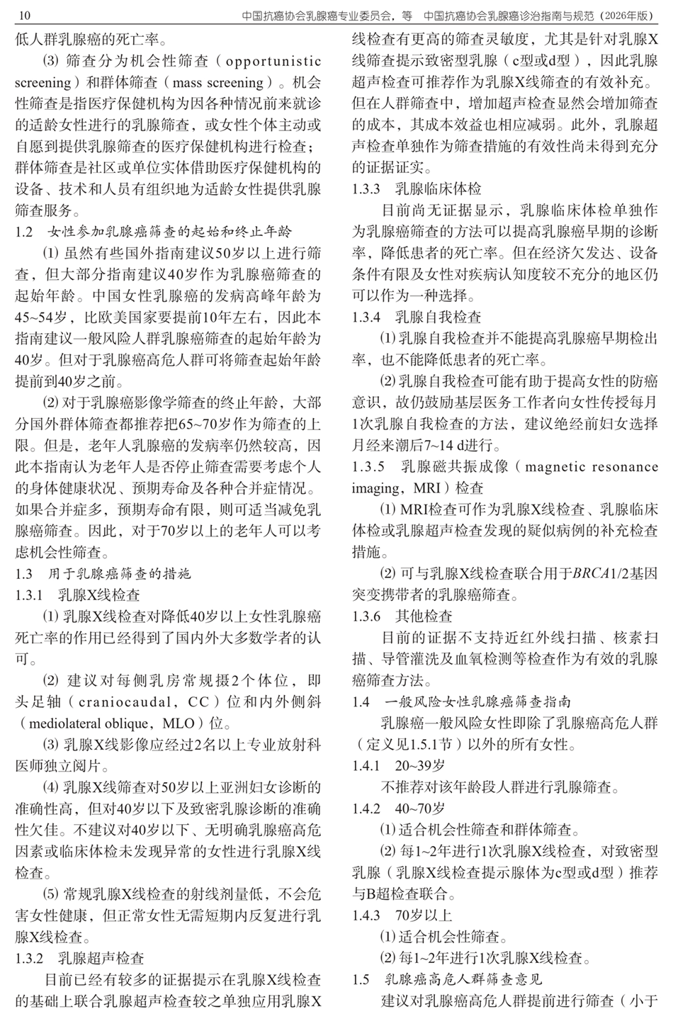 中国抗癌协会乳腺癌诊治指南与规范(2026年版)