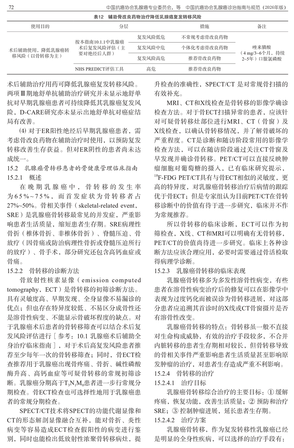 15、乳腺癌骨健康管理和骨转移的临床诊疗指南