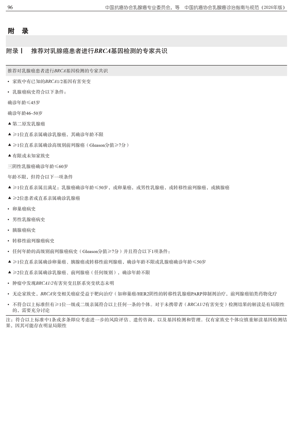 附录1 推荐邓乳腺癌患者进行BRCA基因检测的专家共识