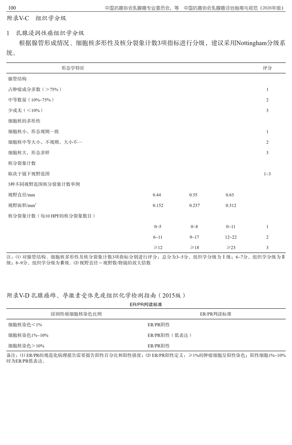 附录V-C 乳腺浸润性癌组织学分级 附录V-D 乳腺癌雌、孕激素受体免疫组织化学检测