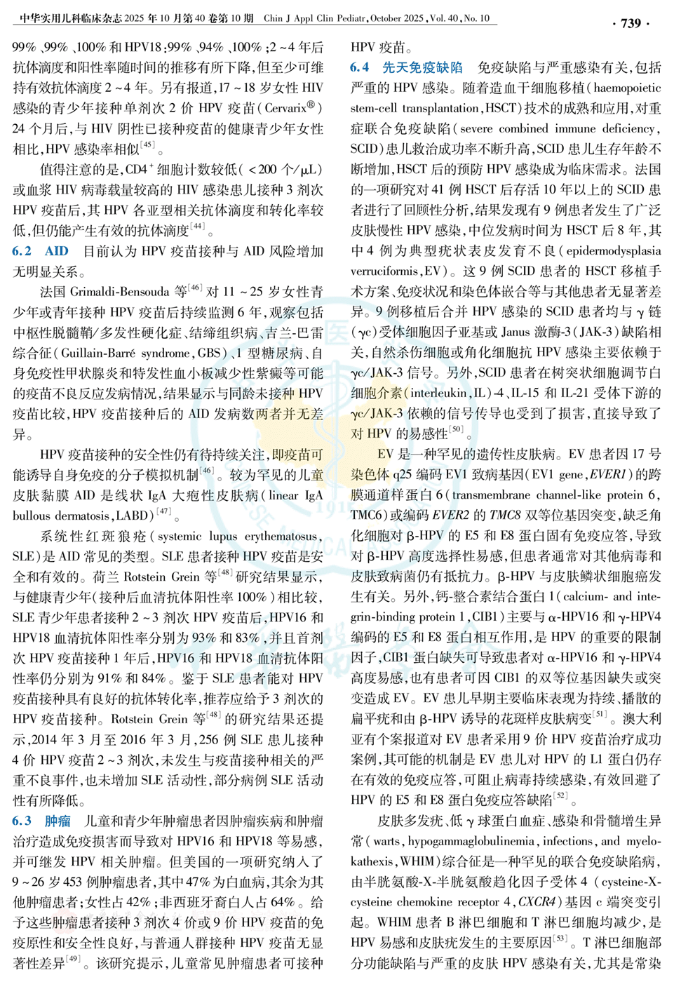 6、免疫损害儿童和青少年的HPV疫苗接种