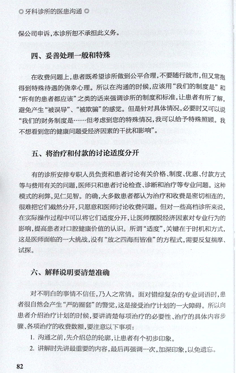 五、将治疗和付款的讨论适度分开
