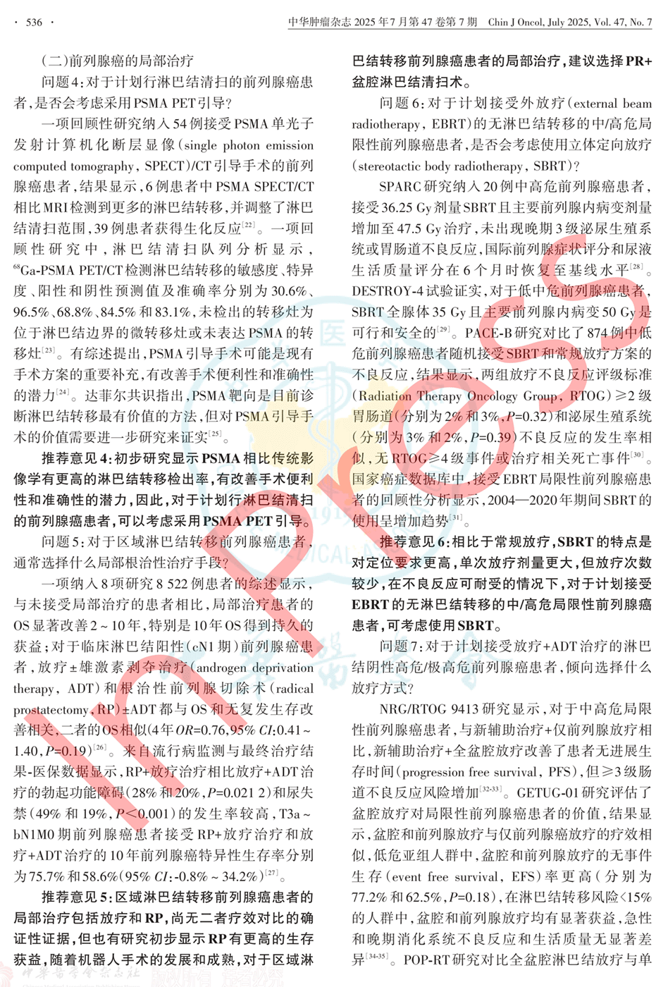 二、问题及推荐意见(前列腺癌的局部治疗)