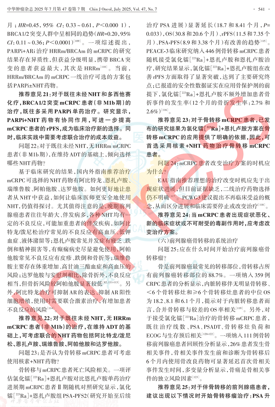 二、问题及推荐意见:mHSPC、mCRPC的系统治疗