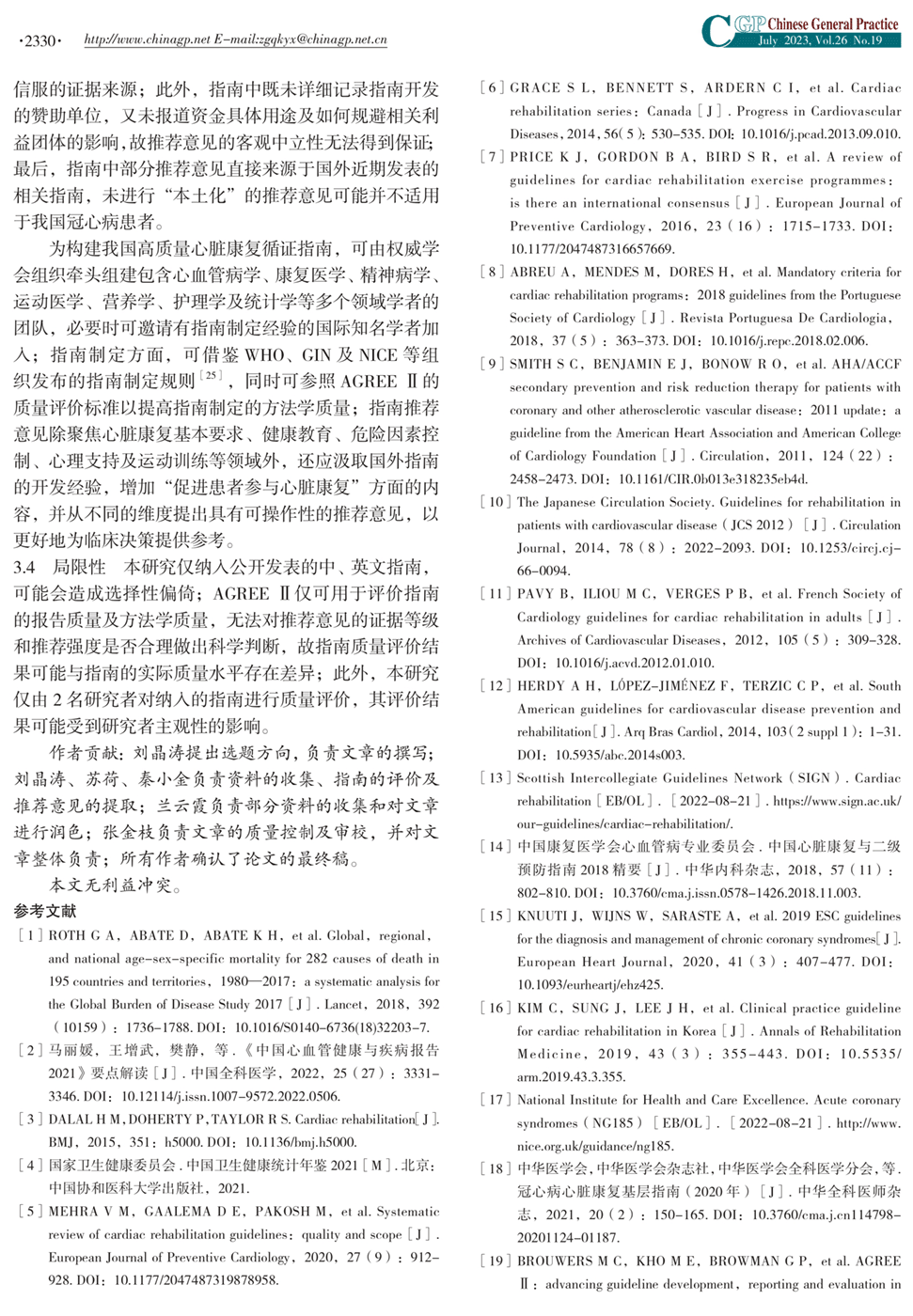 3、讨论:纳人冠心病患者心脏康复相关指南的主要推荐意见