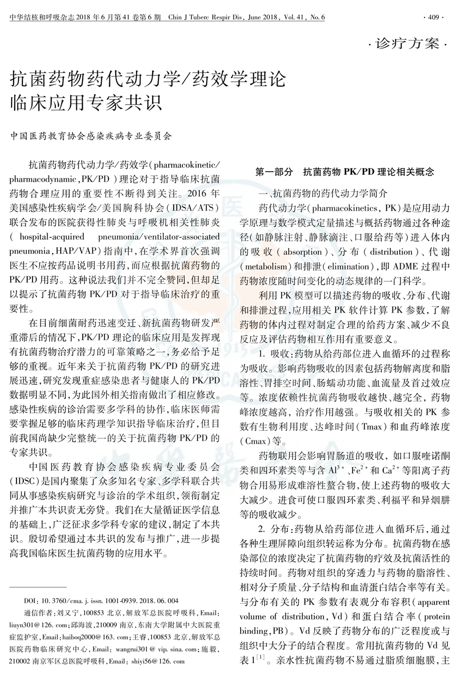 抗菌药物药代动力学/药效学理论临床应用专家共识(2018年)