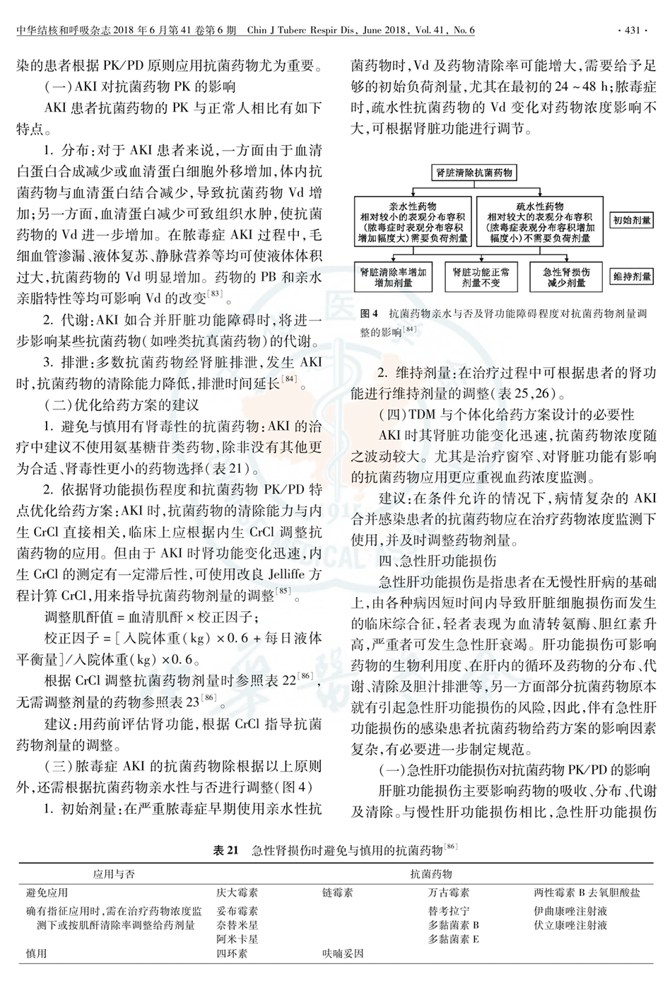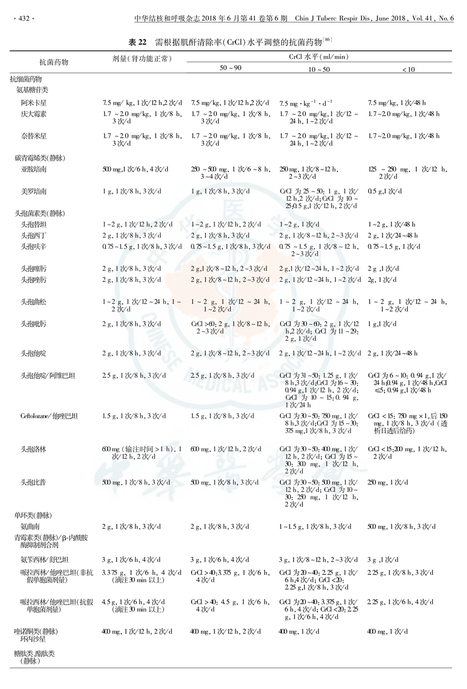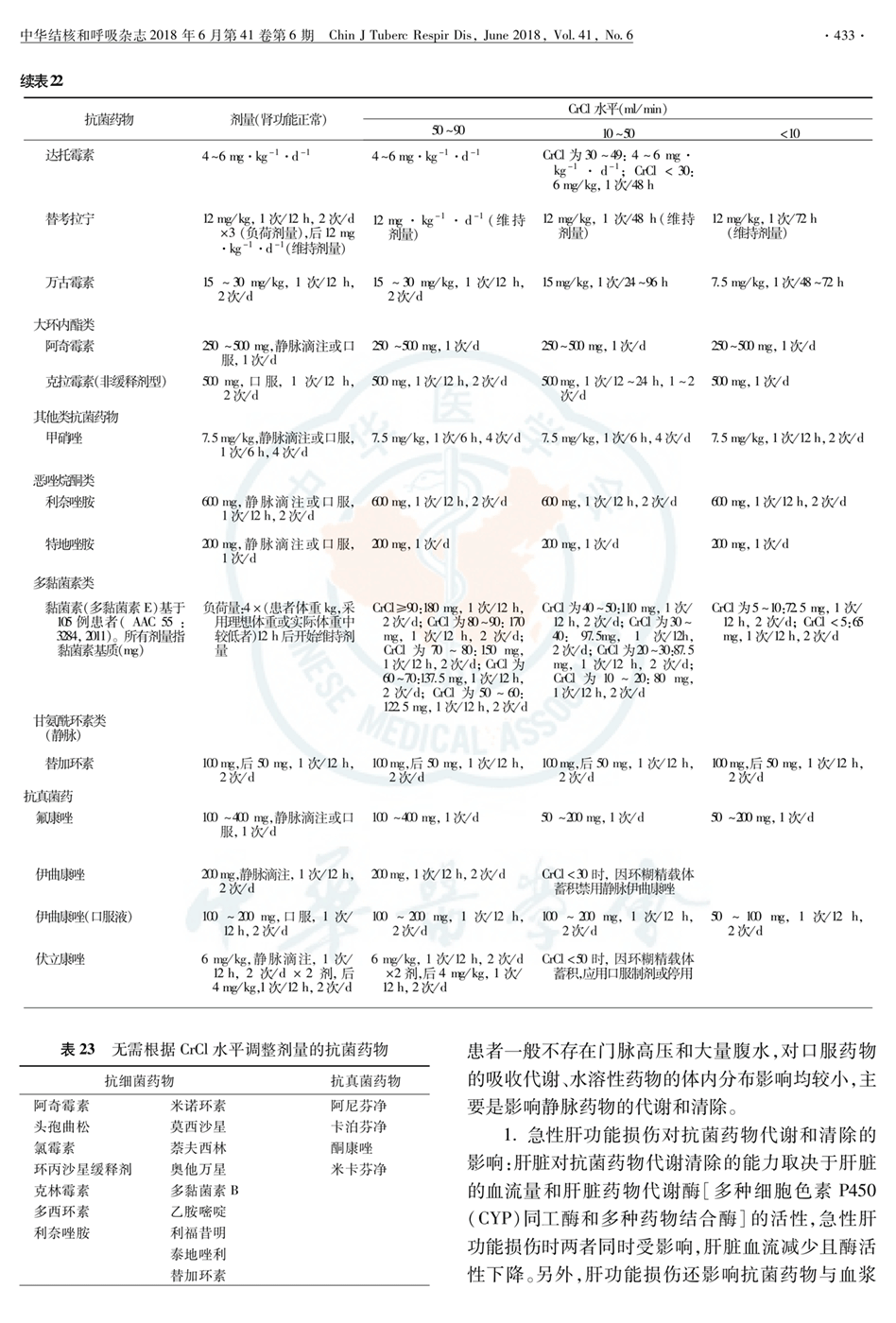 四、急性肝功能损伤:表22 需根据肌酐清除率水平调整的抗菌药物