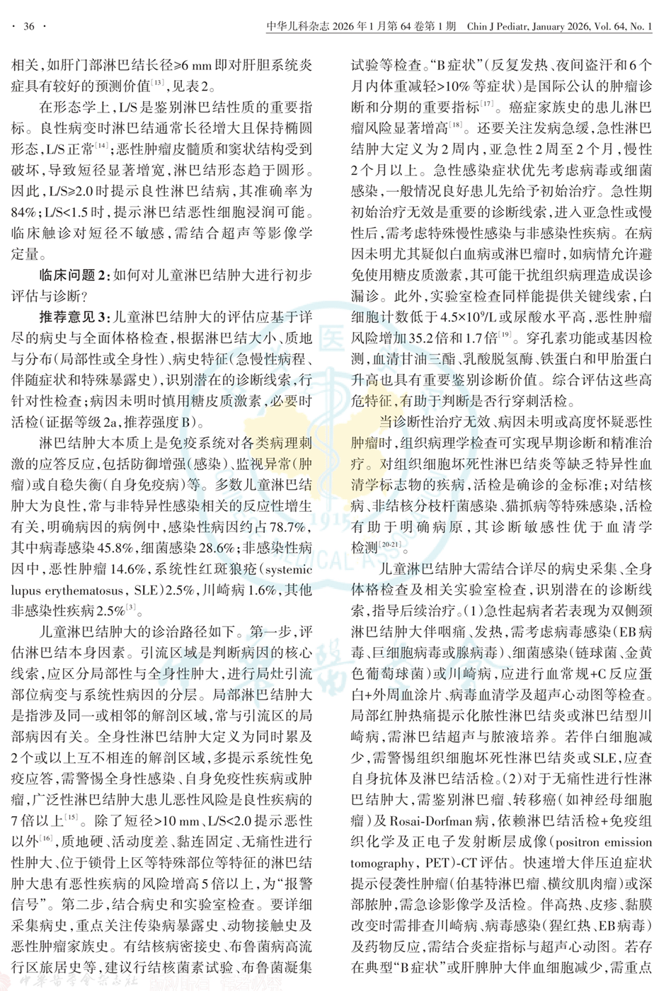 临床问题2:如何对儿童淋巴结肿大进行初步评估与诊断?