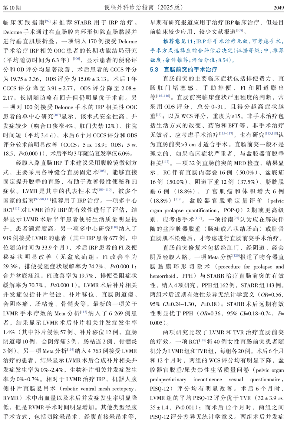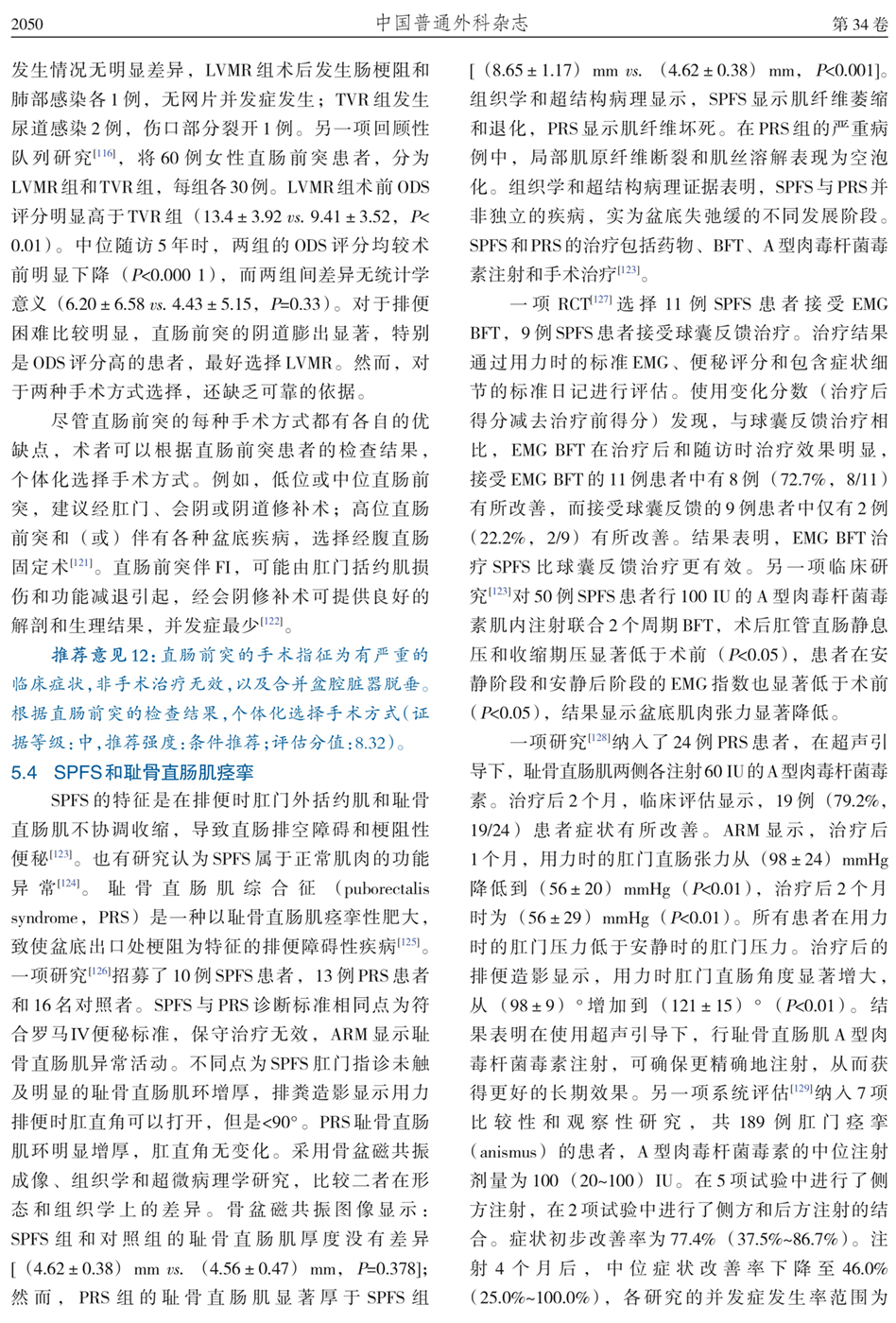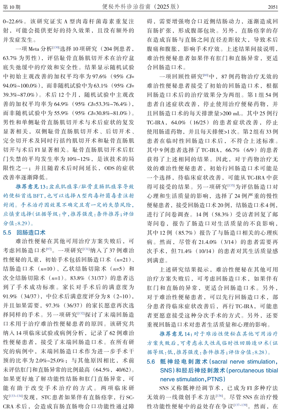5、手术治疗:直肠前突的手术治疗、SPFS和耻骨直肠肌痉挛、回肠造口术、骶神经电刺激术