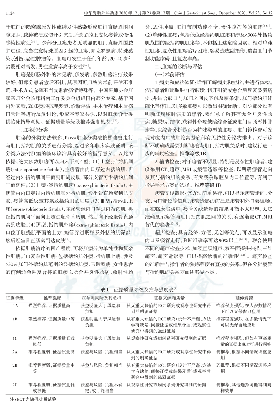 一、肛瘘的分类 二、肛瘘的诊断与评估 表1 证据质量等级及推荐强度表