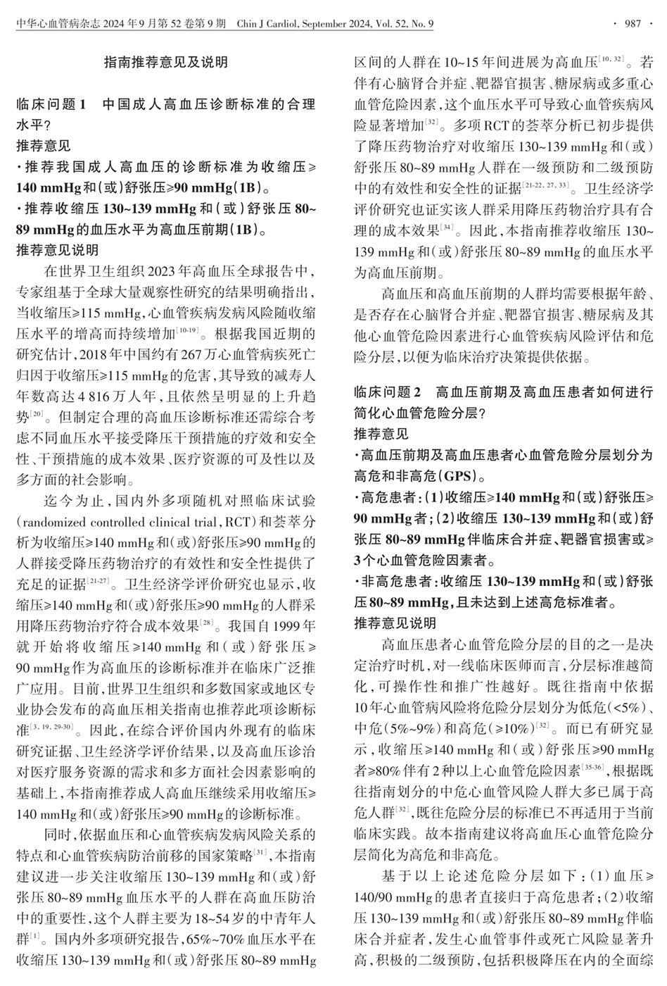 临床问题1:成人高血压诊断标准的合理水平? 临床问题2:简化心血管危险分级?