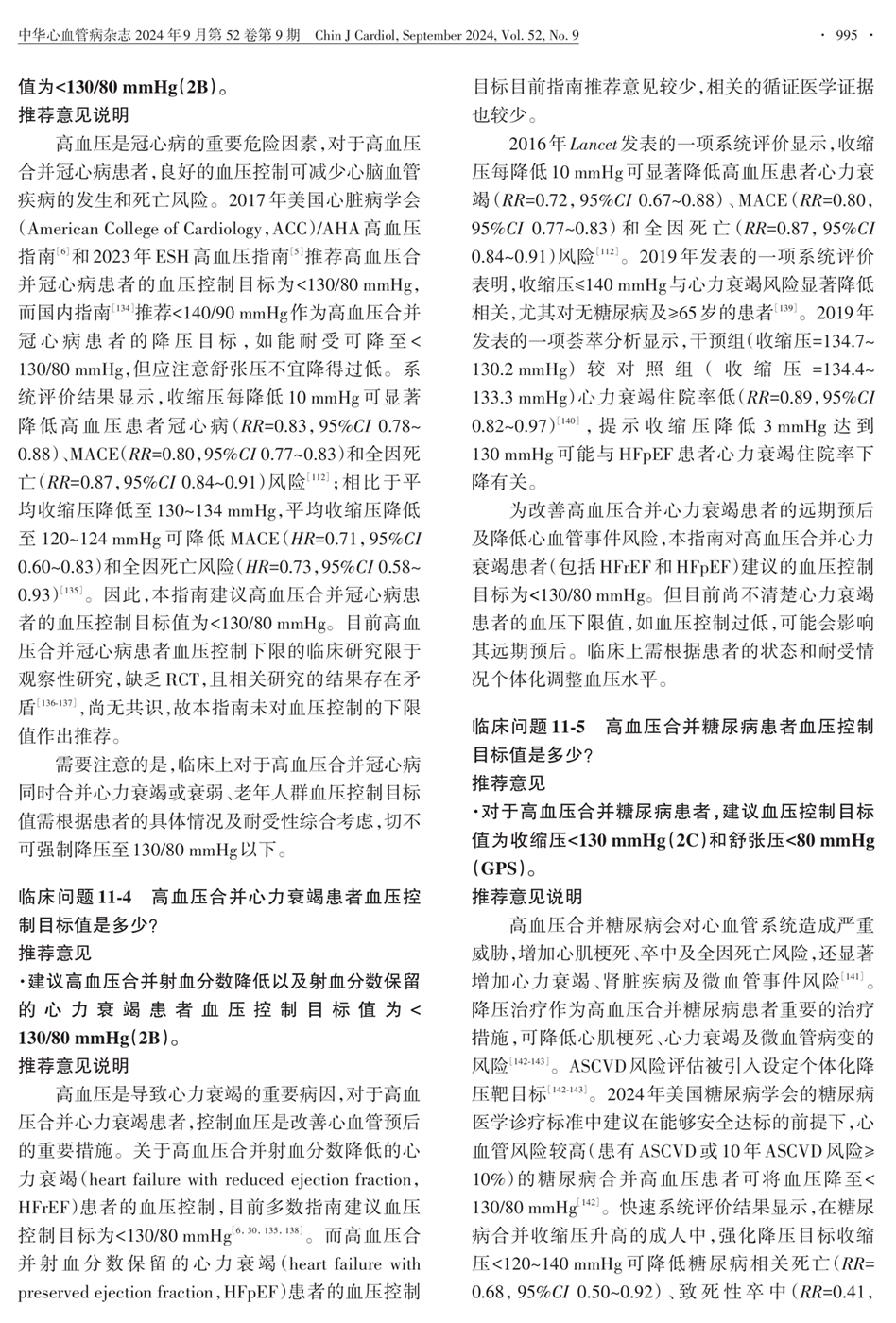 临床问题11-3-4-5:合并冠心病、心力衰竭、糖尿病患者血压控制目标值是多少?