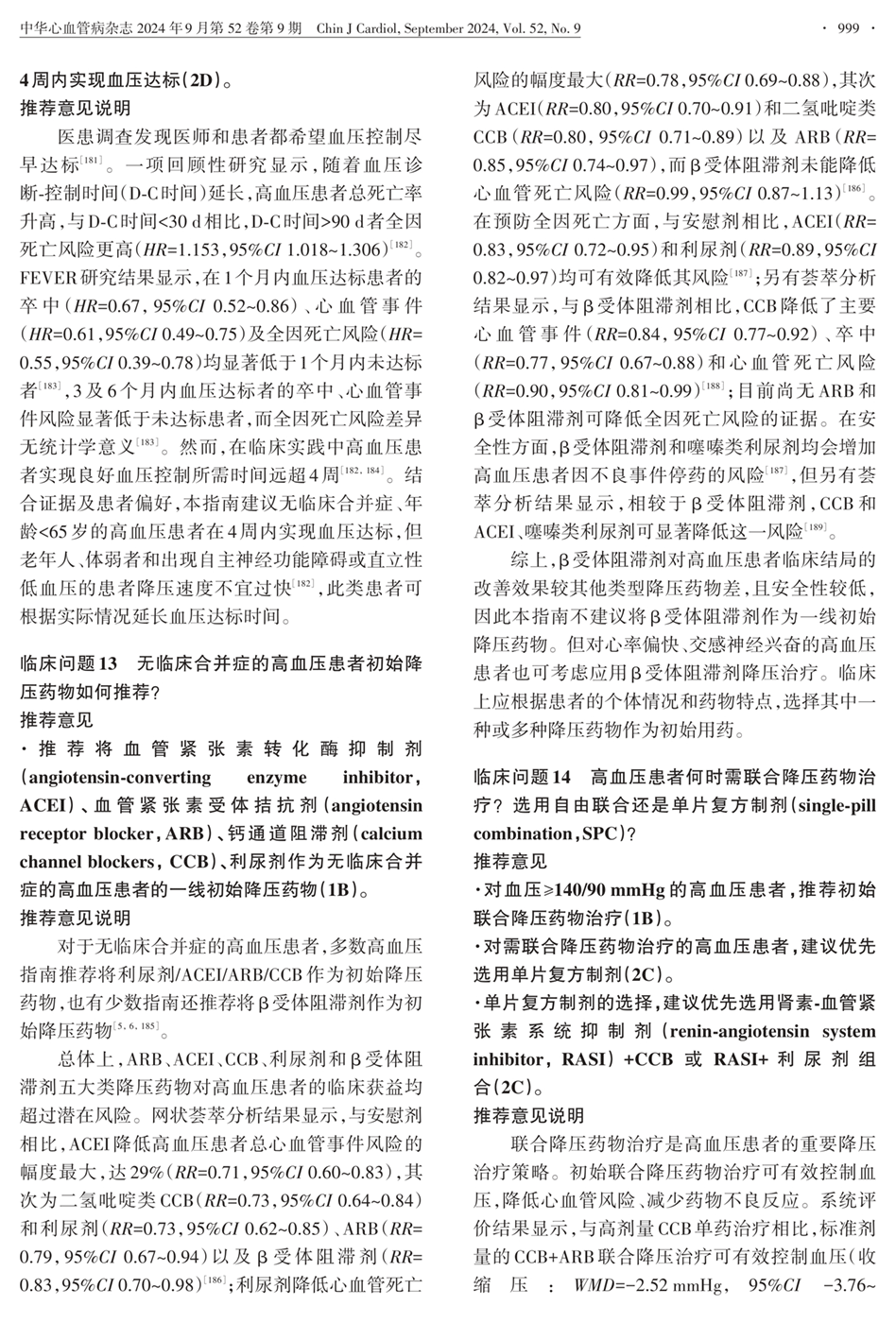 临床问题12:是否在4周内实现血压达标?临床问题13:无合并症初始降压药如何推荐?