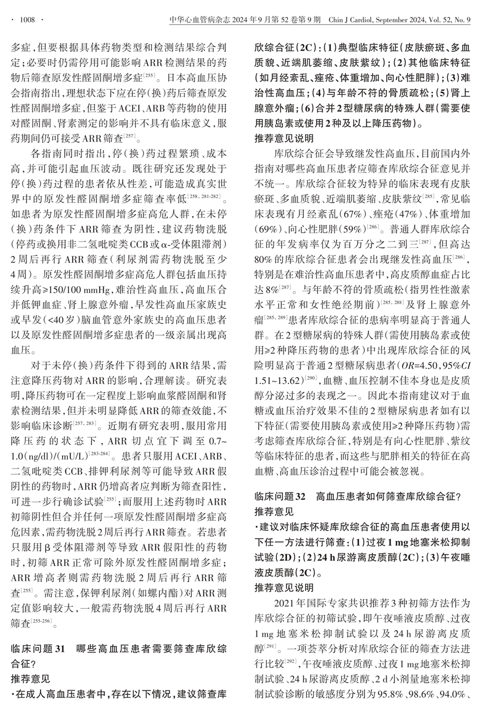临床问题28-29:原发性醛固酮增多指标切点值、ARR阳性确认?临床问题30:是否需要药物洗脱?