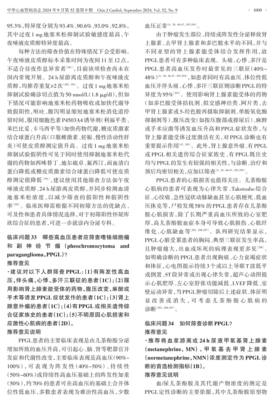 临床问题31:哪些需筛查嗜铬细胞瘤和副神经节瘤?临床问题34:如何筛查诊断PPGL?
