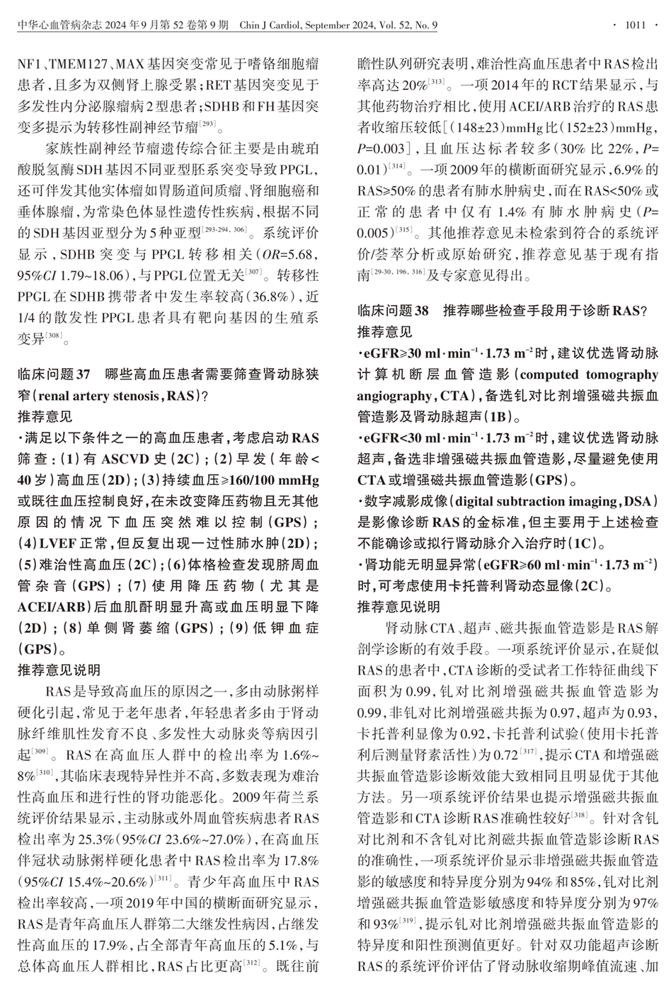 临床问题37:哪些需筛查肾动脉狭窄?临床问题38:哪些手段用于诊断RAS?