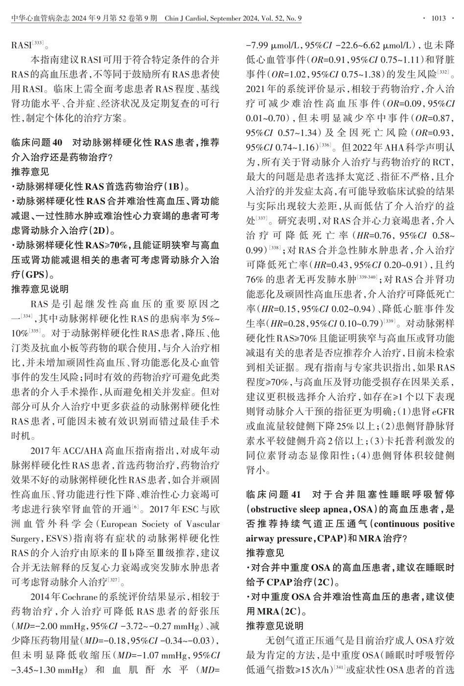 临床问题40:RAS介入治疗还是药物治疗?临床问题41:合并阻塞性睡眠呼吸暂停的治疗?