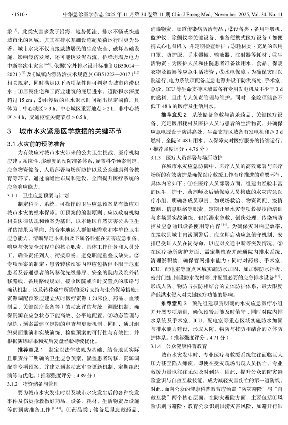 城市水灾紧急医学救援共识