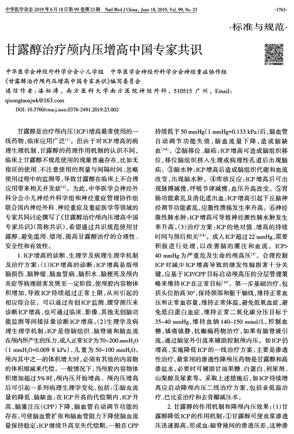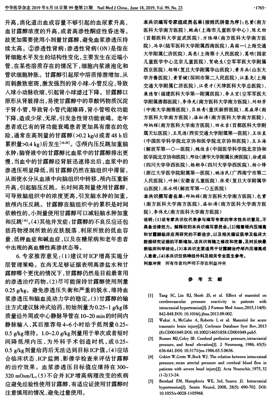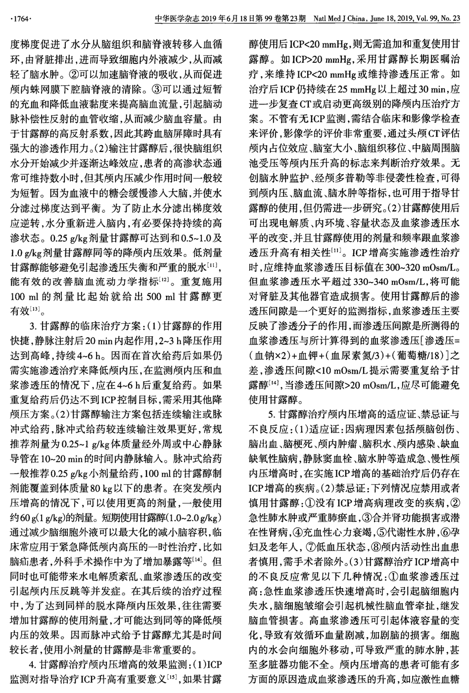 甘露醇治疗颅内压增高中国专家共识(2019年)