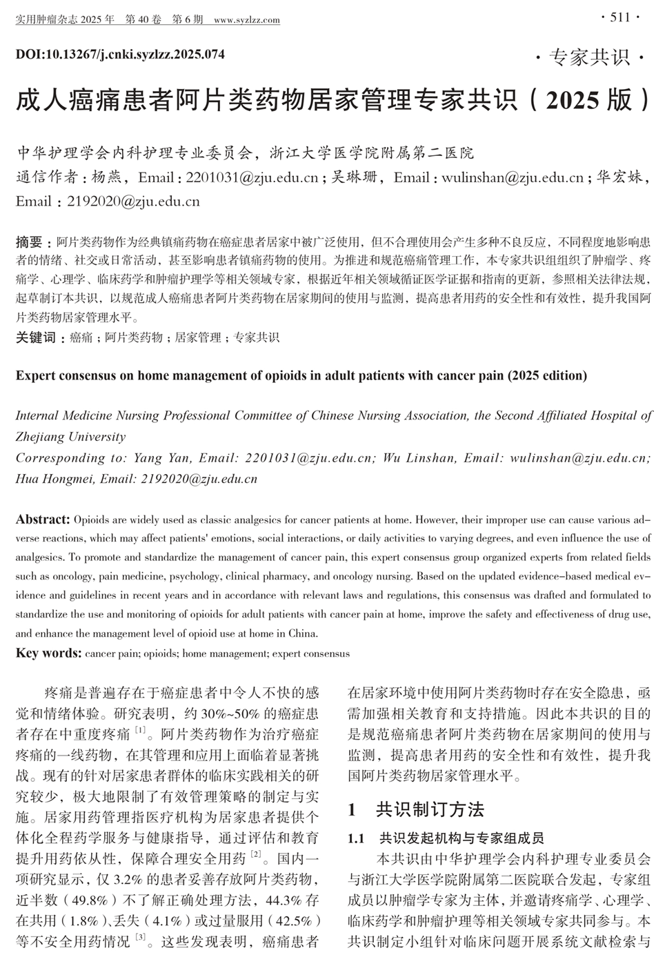 成人癌痛患者阿片类药物居家管理专家共识(2025版)