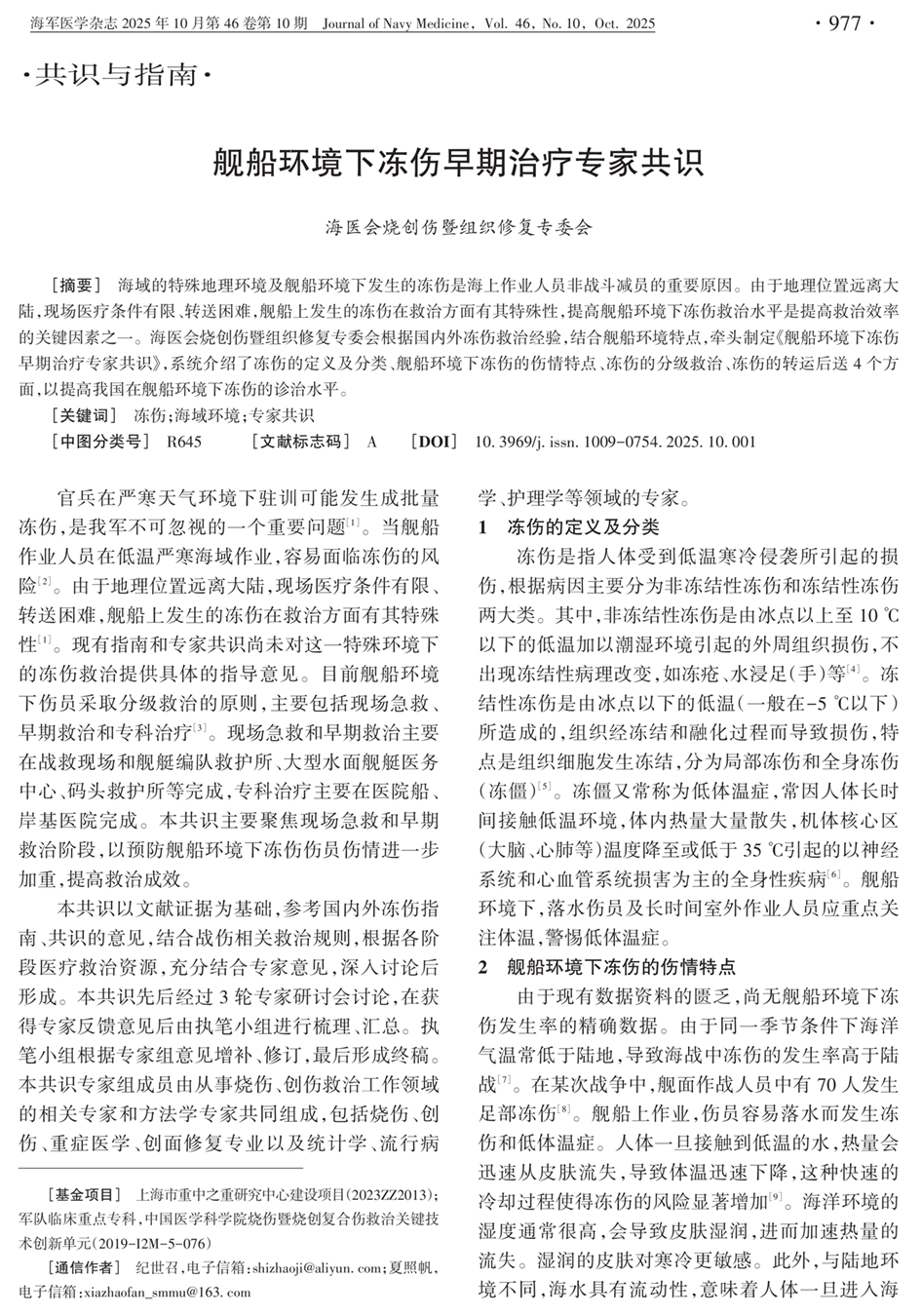 舰般环境下冻伤早期治疗专家共识(2025年)
